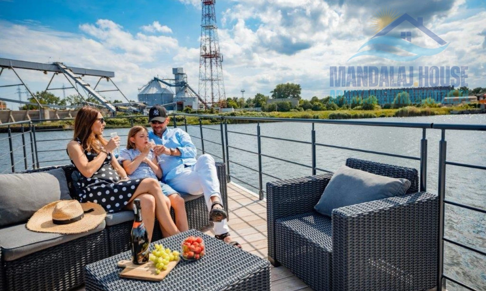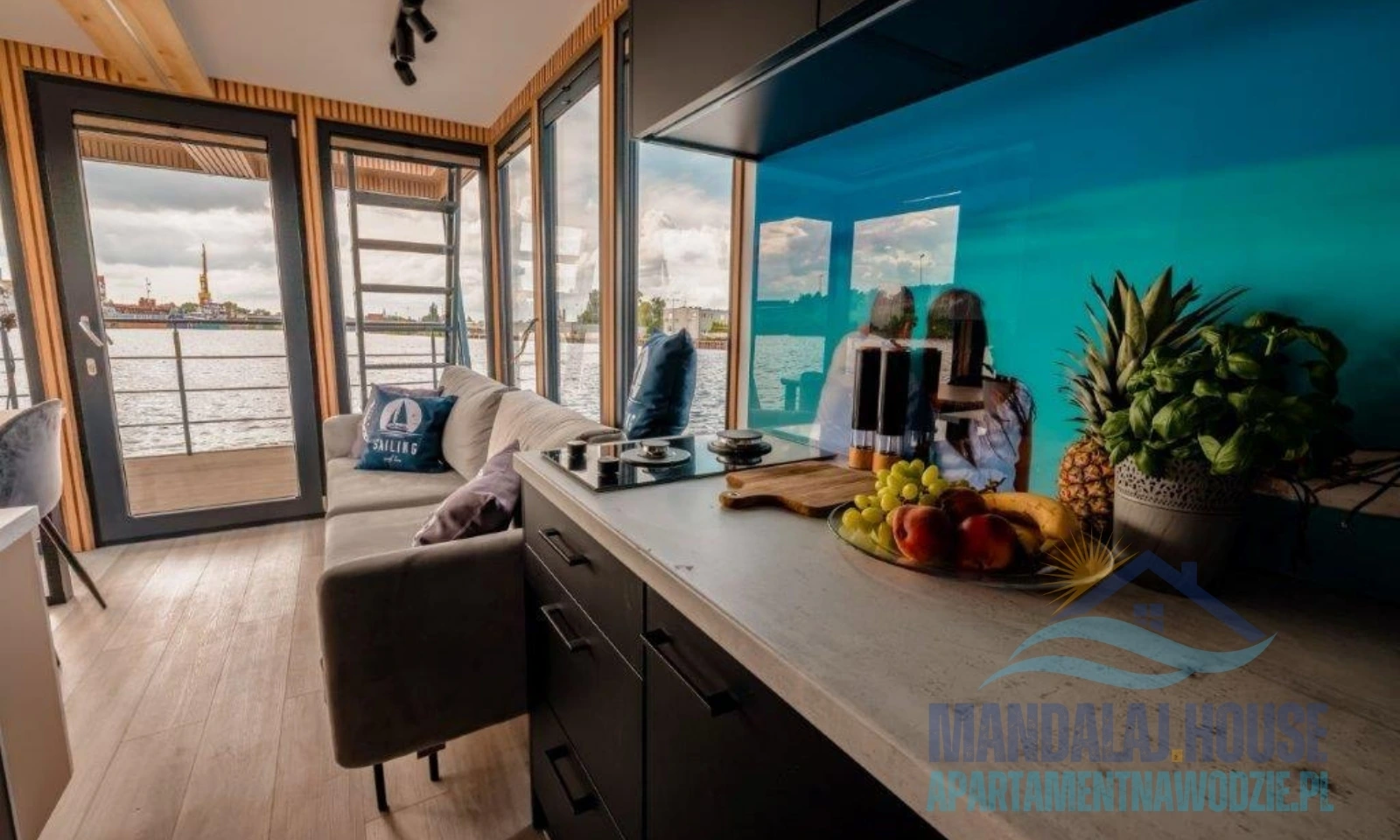 Nasz Apartament na Wodzie – Mandalaj.House, to stacjonarny domek rekreacyjny postawiony na wodzie i przycumowany do pomostu znajdującego się na terenie małego ośrodka Natura Park w Trzebawiu.