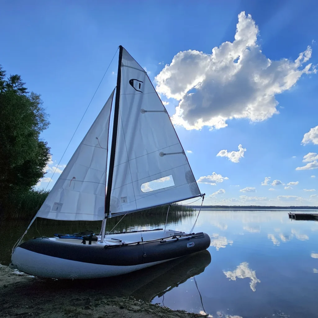 Żaglówki dmuchane DinghyGO dostępne dla gości naszego apartamentu na wodzie są proste w obsłudze i nie wymagają dodatkowych uprawnień. Można na nich pływać samodzielnie lub z załogą – nawet do 4 osób.